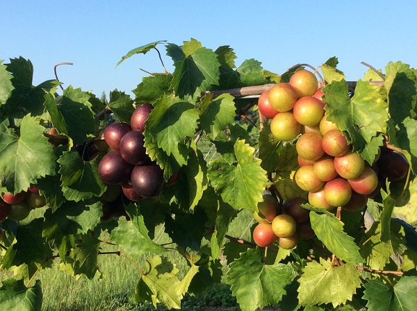 The muscadine grape cultivars Triumph and Supreme account for the majority of the vines at Lake Norris Vineyard. Both varieties were developed specifically for the fresh fruit market, as opposed to the processed juice market. Though they are both members of the same species, Triumph and Supreme differ in appearance, aroma, flavor, and harvest period.